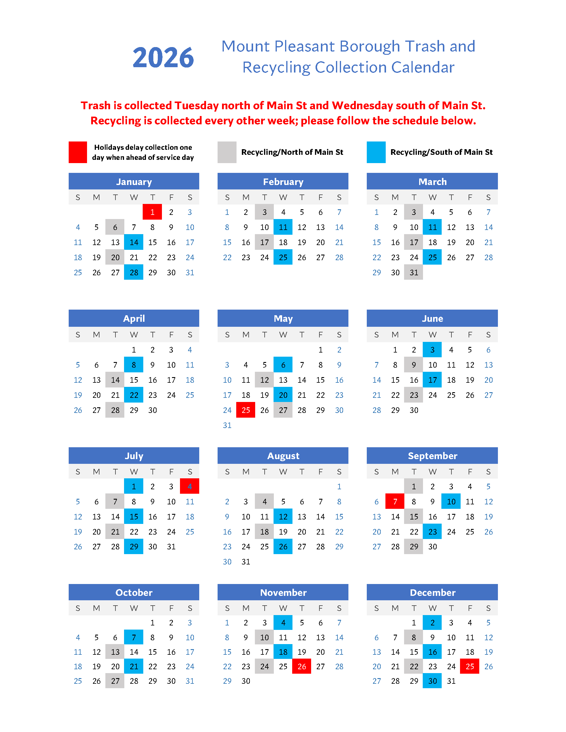 2026 Trash and Recycling Schedule